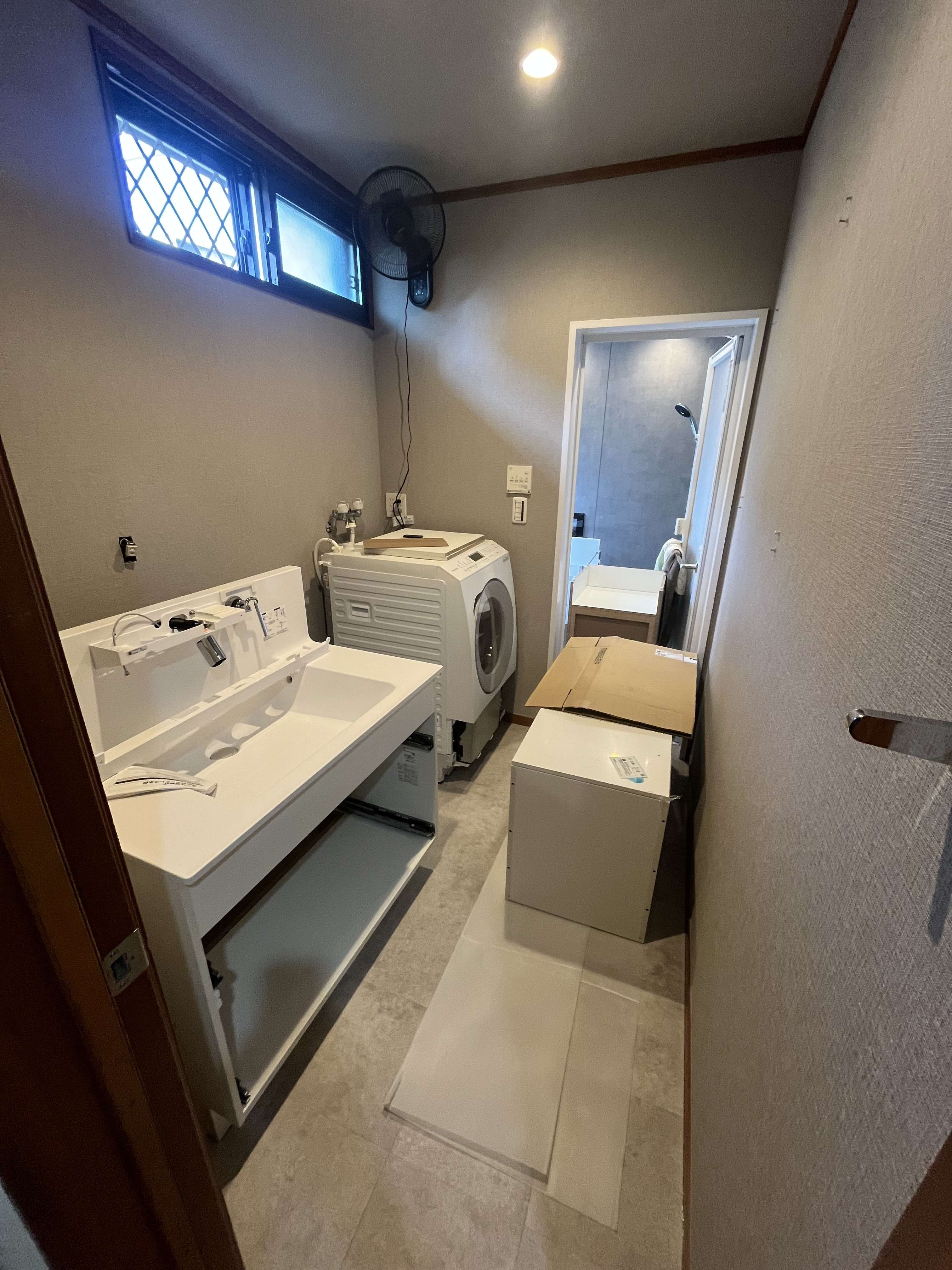 15時前に貼り終え、19:30に設備取り付け完了!!