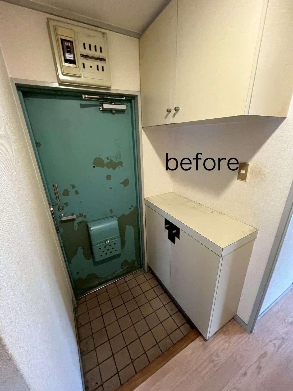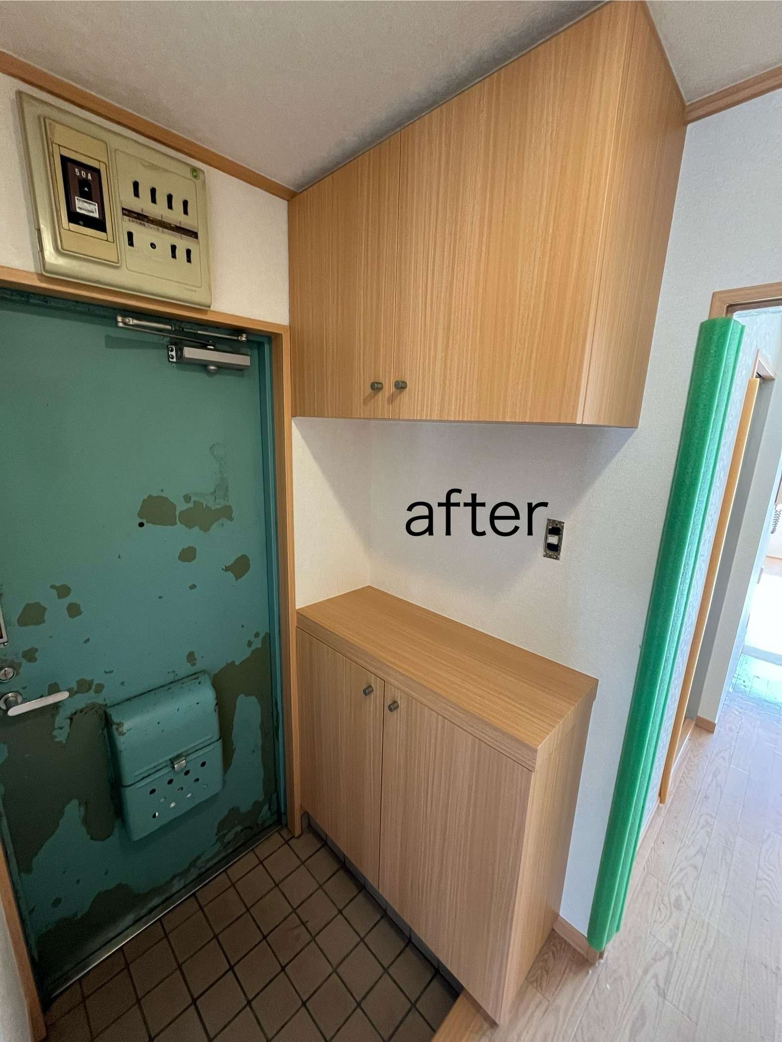 下駄箱交換するか迷いましたがコスト面でシートラッピングで済ませました。