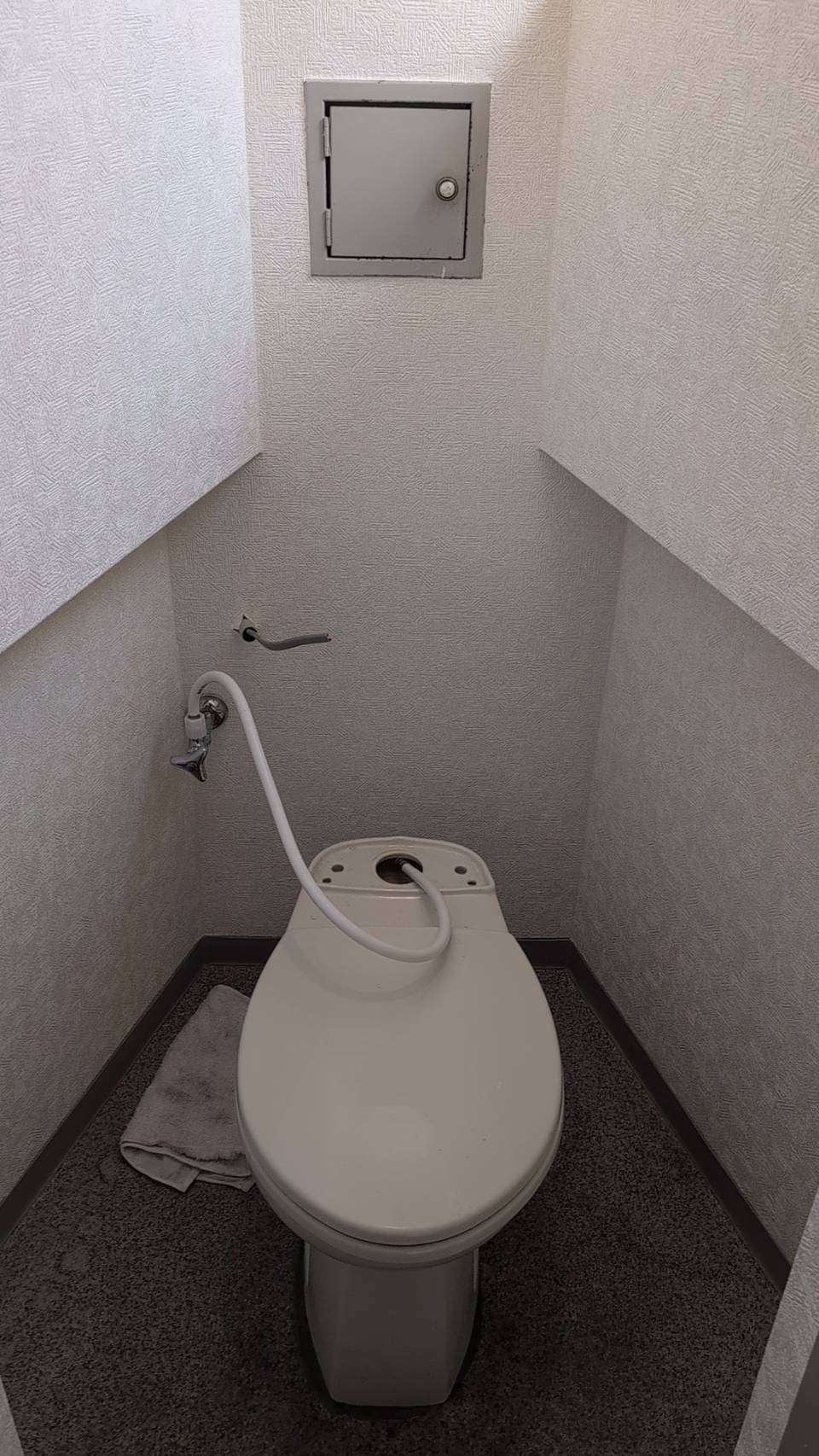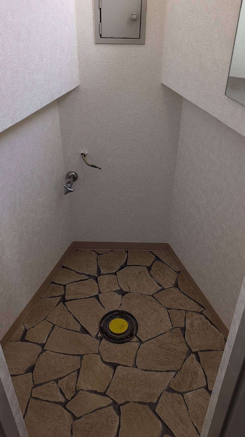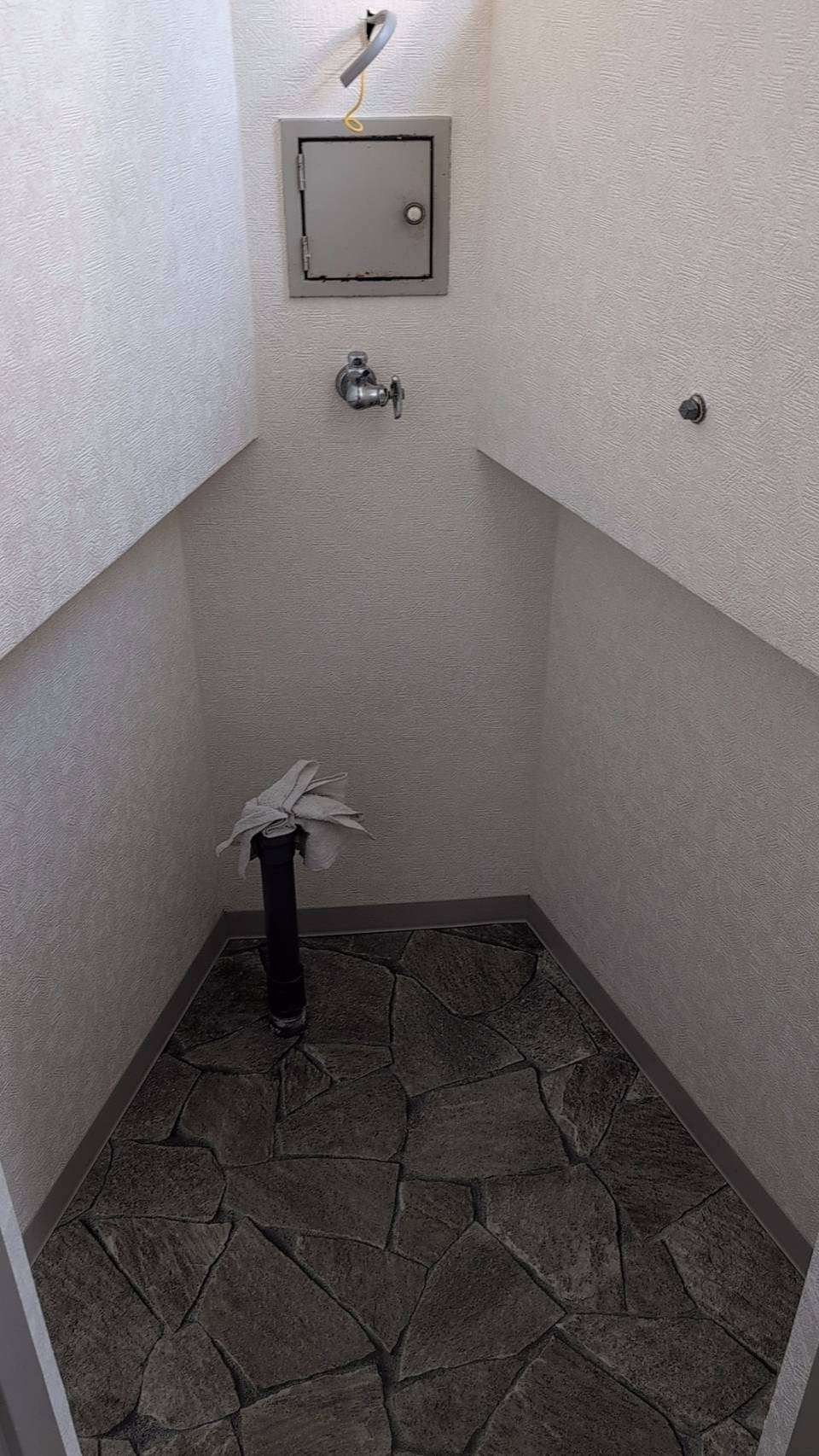 階段途中にあるトイレ2つと洗面所の壁クロスと床CF(土足用)の貼り替え工事。