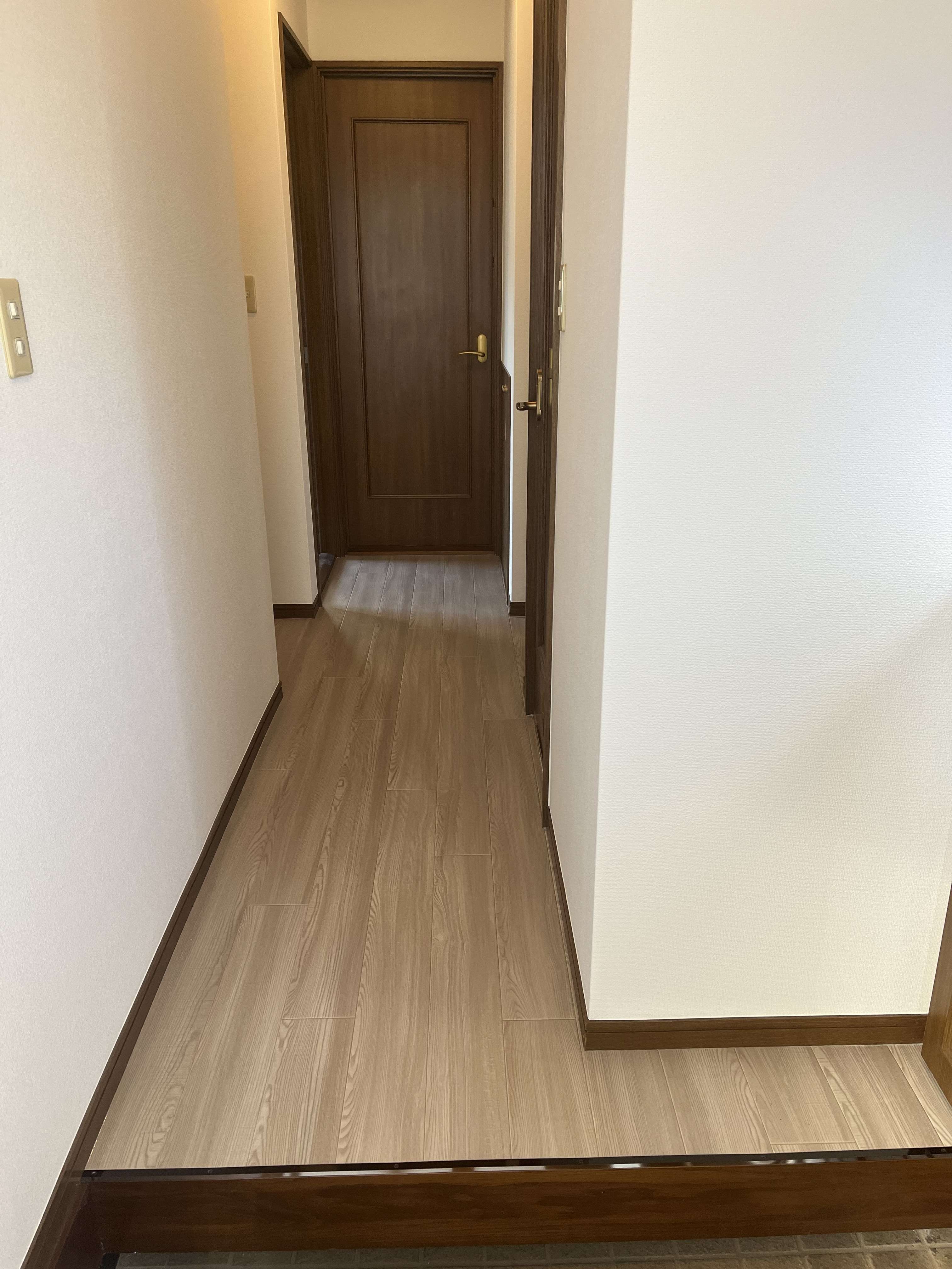 廊下のクッションフロア工事。