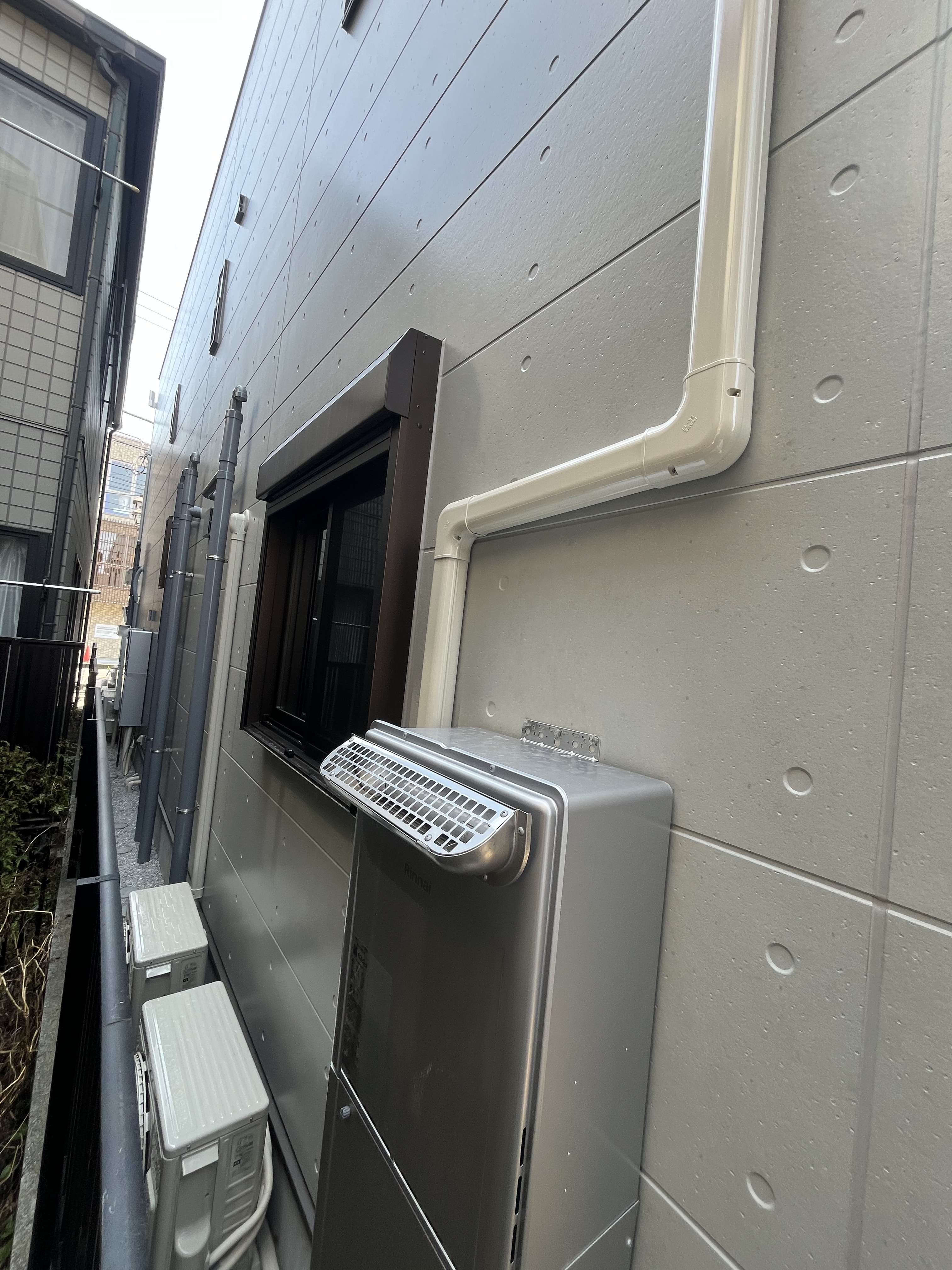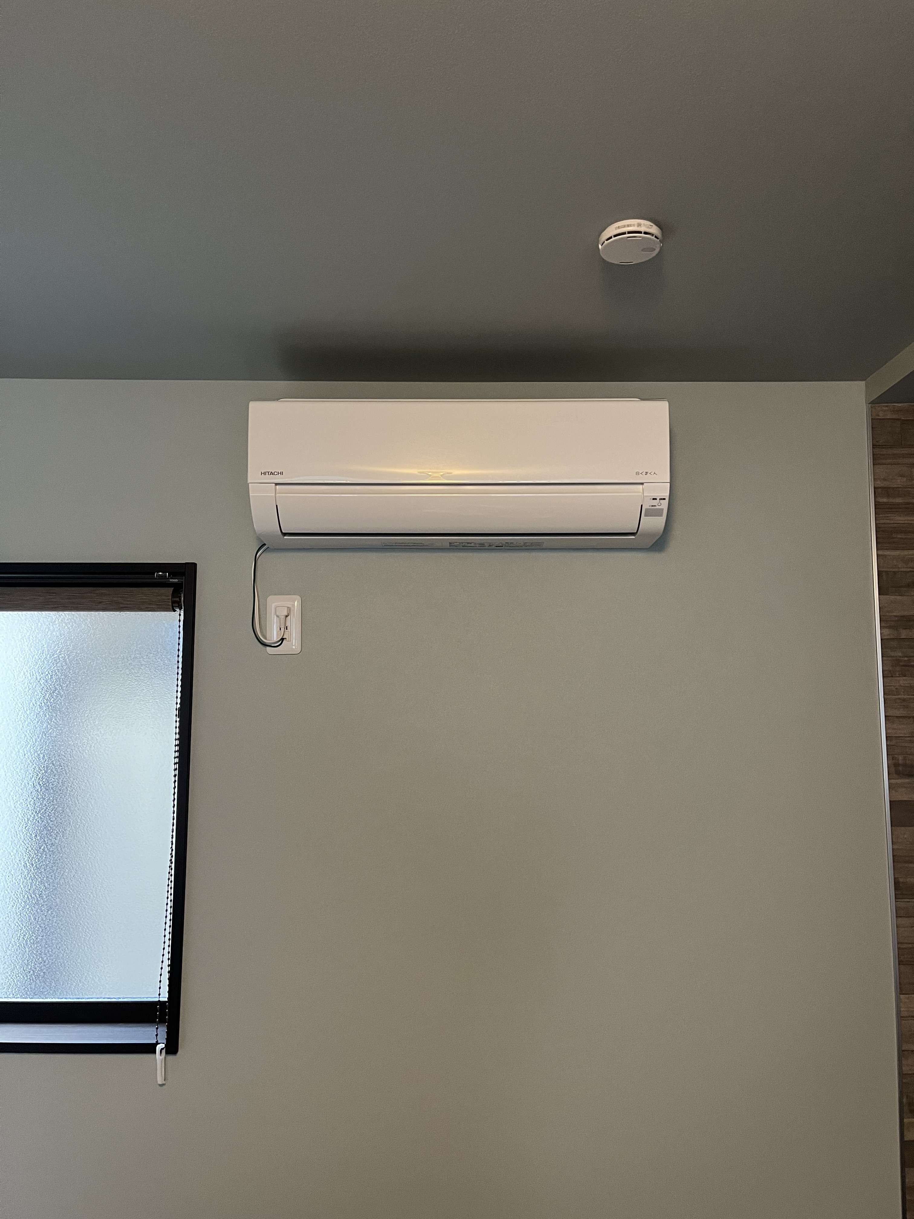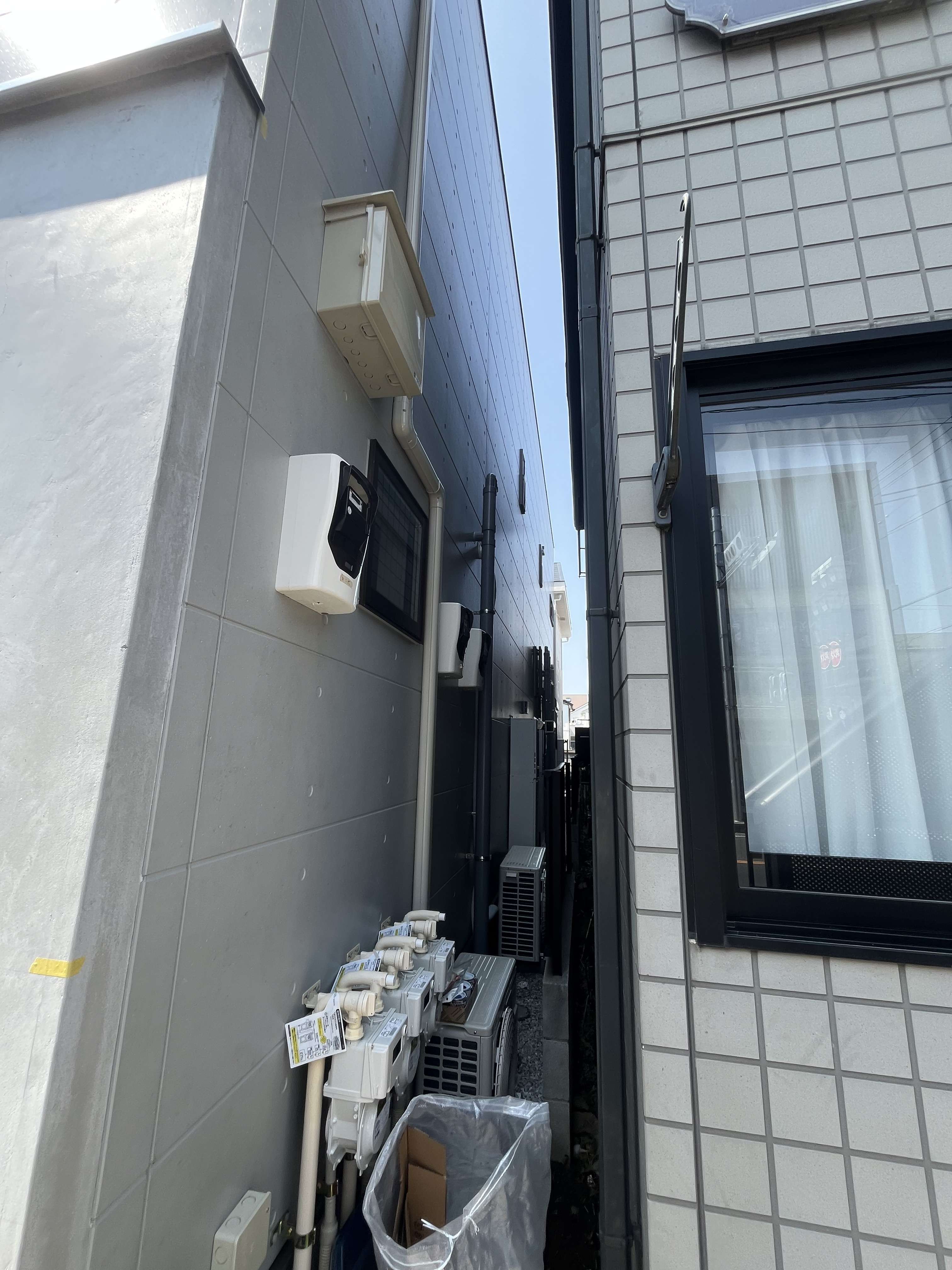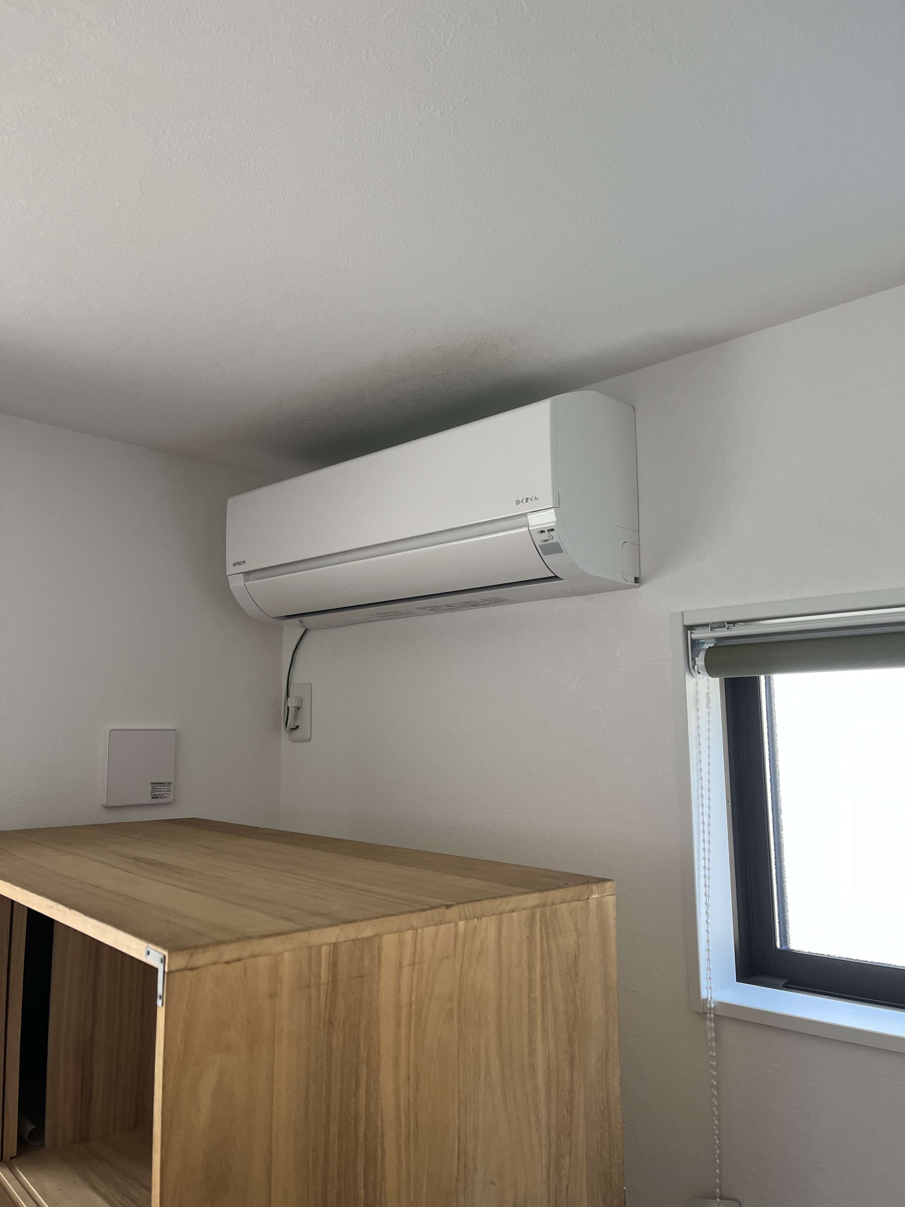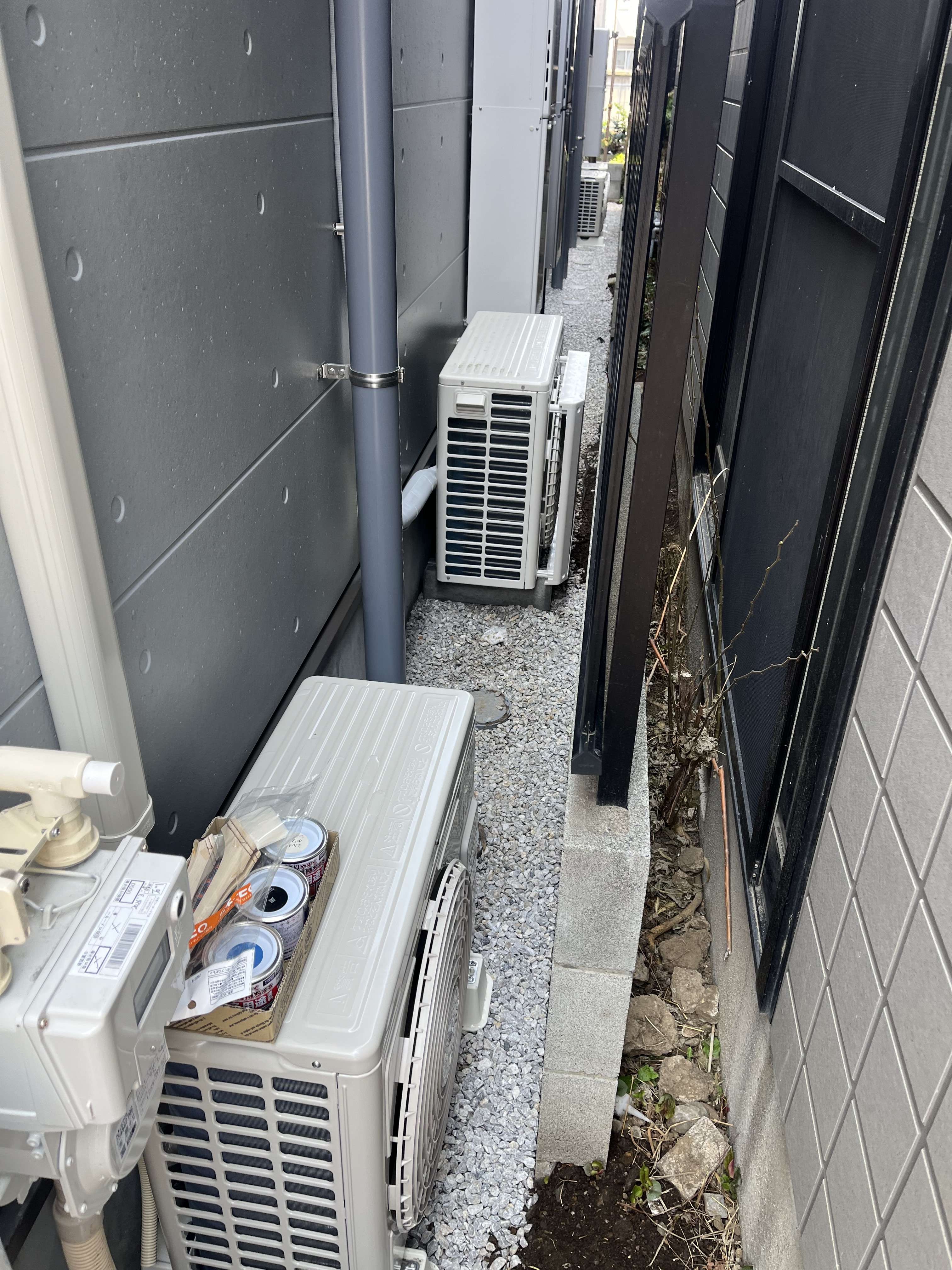 3台共、室外機設置場所がとても狭く、その内2台は2階から1階へ室外機なので急勾配の2連梯子施工でした。